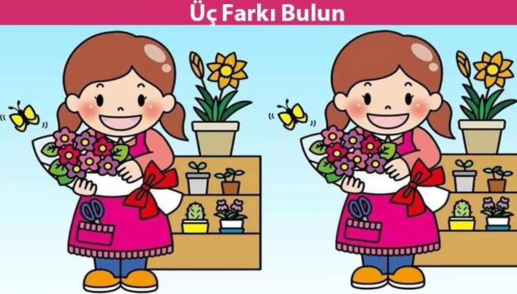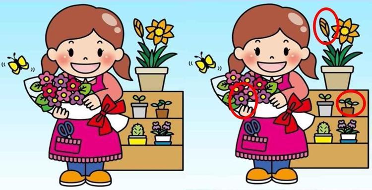 Yuxarıda paylaşılan illüstrasiyada gül dükanının yanında əllərində çiçəklərlə dayanmış qız şəkilləri var. İki fotoşəkil ilk baxışdan demək olar ki, eyni görünür. Ancaq diqqətlə baxsanız, iki şəkil arasında bəzi fərqləri görə bilərsiniz. Məqsəd 14 saniyə ərzində iki şəkil arasındakı üç fərqi aşkar etməkdir.
