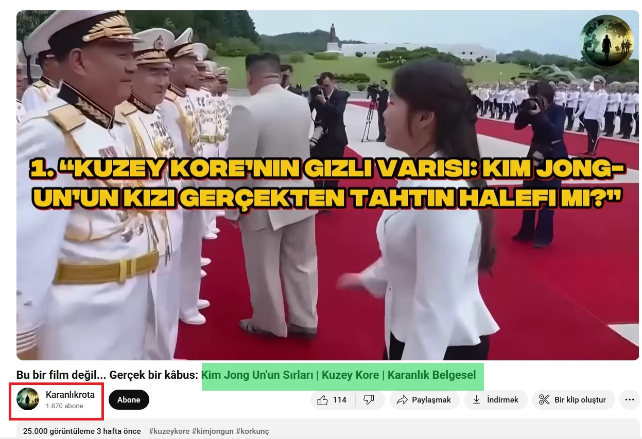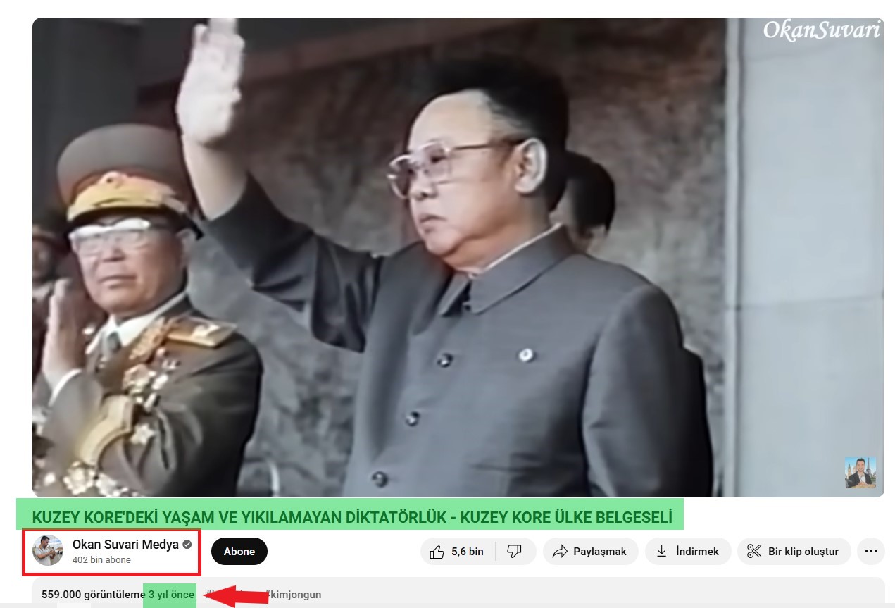 Şimali Koreya ilə bağlı videolarda isə əksini görürük: Okan Süvarinin “youtube” kanalında 3 il bundan öncə hazırlanan videosu 3 həftə öncə “Karanlık rota” kanalında yayımlanan videonun məzmun baxımından eynisidir.