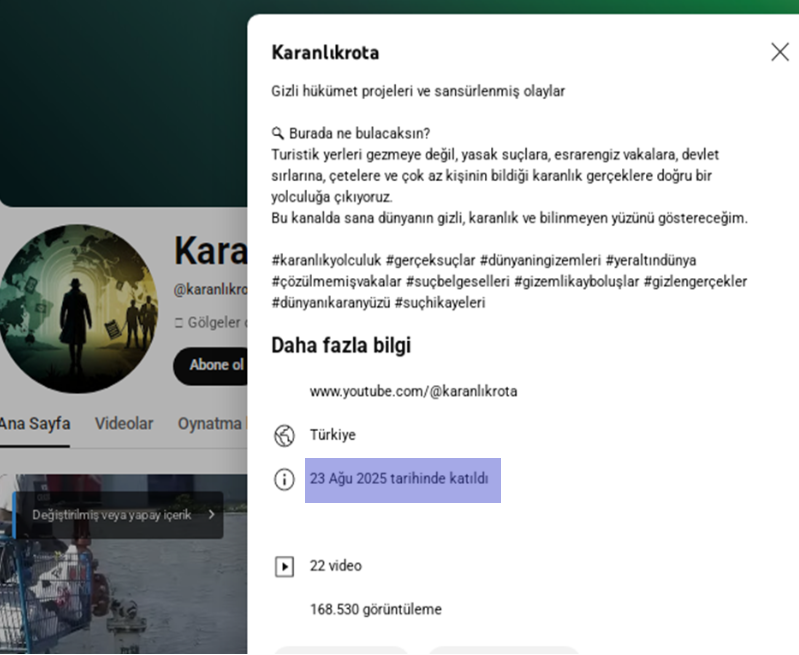 Araşdırmaq üçün kanalın bağlı olduğu nə “facebook”, nə “X”, nə də “LinkedİN” səhifələri tapmaq mümkün oldu. Yalnız kanalın informasiya bölməsinə baxanda bu kanalın 23 avqust 2025-ci il tarixində yaradıldığını görünür.