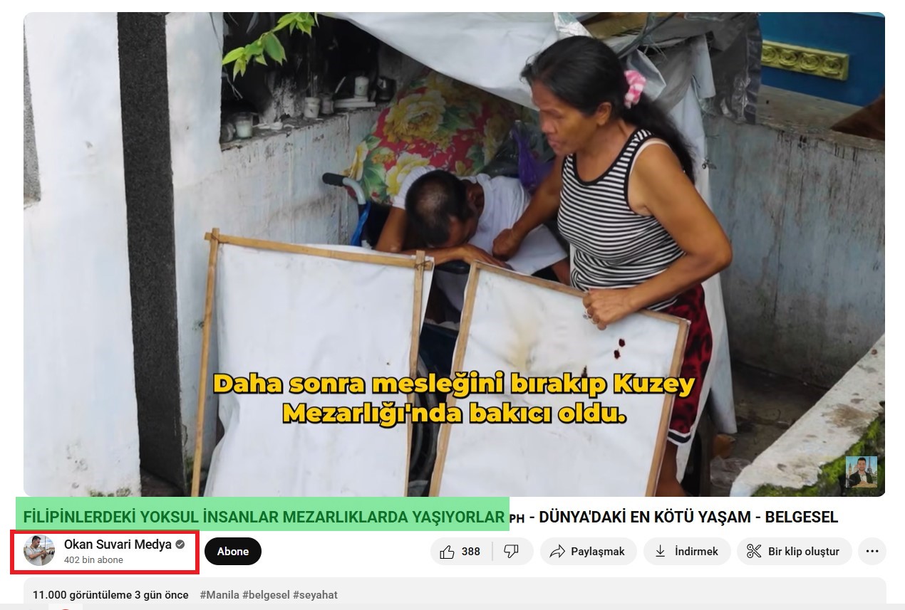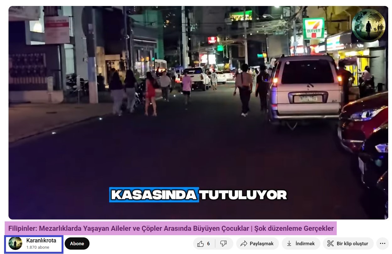 Araşdırmanı davam etdirdikdə “Karanlık Rota”-da Filippinlə bağlı hazırlanan “Filippində məzarlıqda yaşayan uşaqlar” videosundakı fikir və faktların Okan Süvarinin “youtube” kanalında eyni adlı videosunda təkrarlandığını gödük.