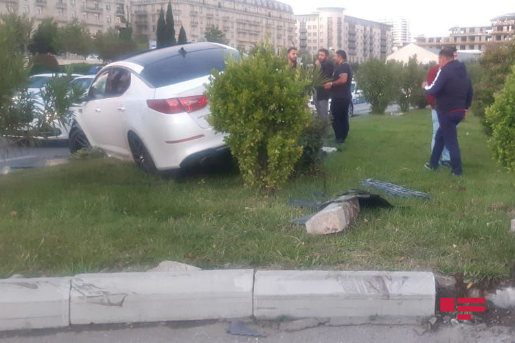 “KIA” markalı avtomobilinin sürücüsü əvvəlcə yolayrıcı betona daha sonra işıq dirəyinə çırpılıb.