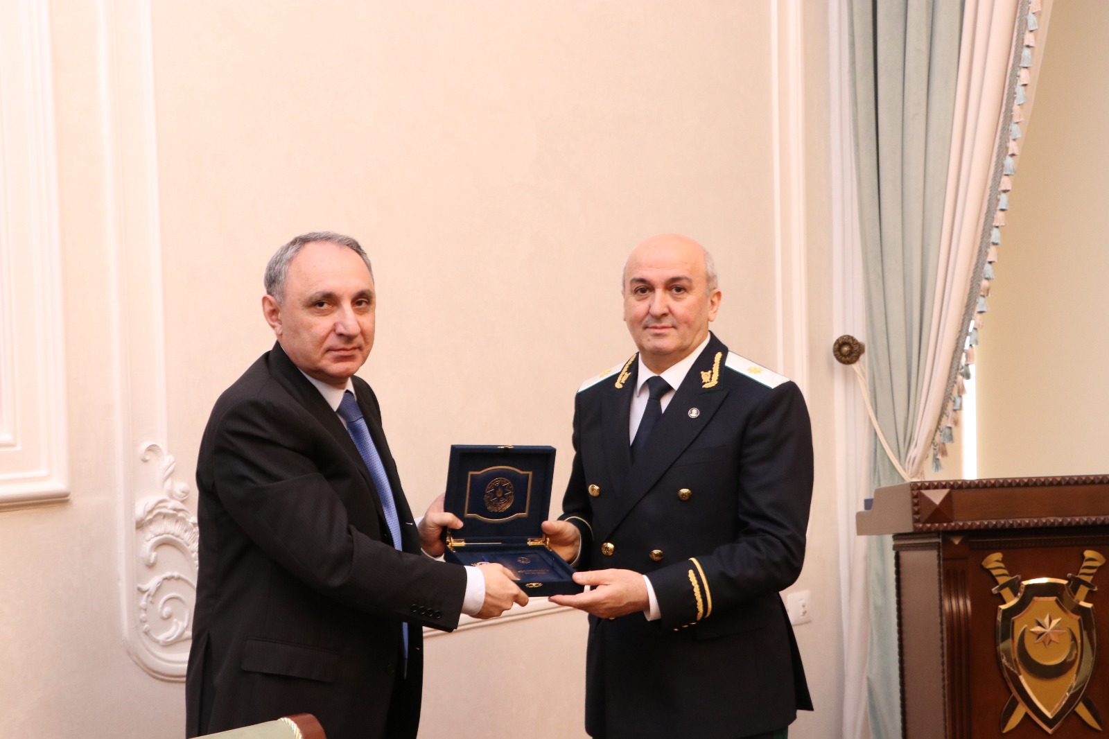 Əmrə əsasən, Prokurorluqda qulluqda olmanın son yaş həddinə çatmış Baş Prokurorluğun Sənədlərlə və müraciətlərlə işin təşkili idarəsinin rəisi, III dərəcəli dövlət ədliyyə müşaviri Eldar Sultanovun qulluq keçməsinə xitam verilib və Baş prokuror Kamran Əliyev tərəfindən ona “Prokurorluğun fəxri işçisi” döş nişanı təqdim edilib.