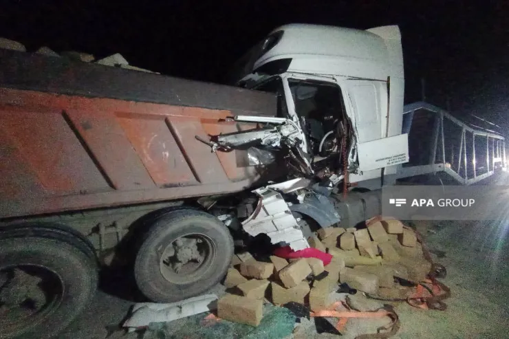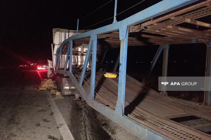 Avtomobil daşıyan yük maşını idarəetməni itirərək mişar daşı daşıyan “KamAZ” markalı avtomobilə çırpılıb.