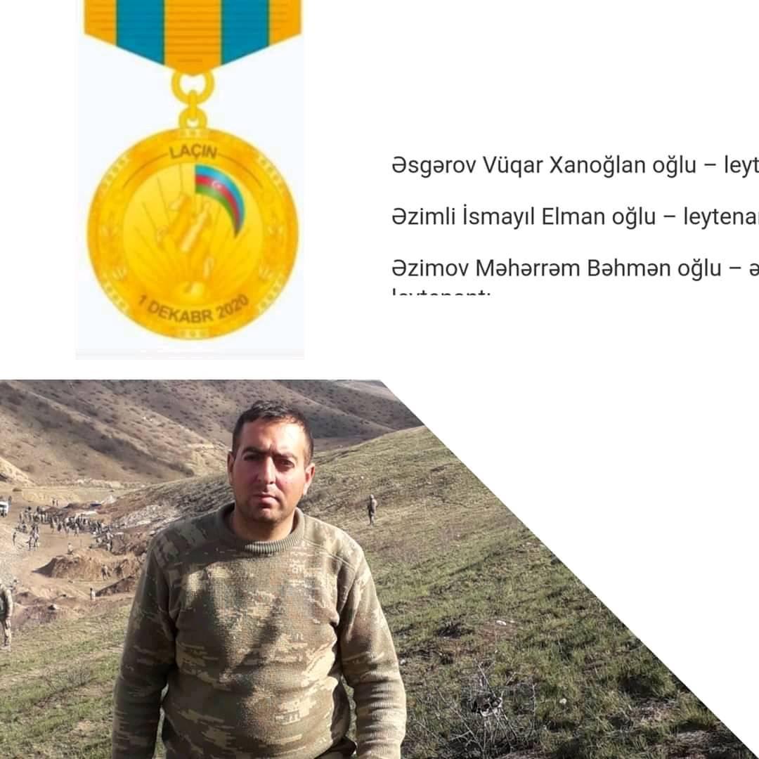 Qeyd edək ki, İsmayıl Əzimli Vətən müharibəsi iştirakçısıdır və "Laçının azad olunmasına görə" medalı ilə təltif olunub. O, Birinci Qarabağ müharibəsi şəhidi Elman Məhərrəmovun oğludur.