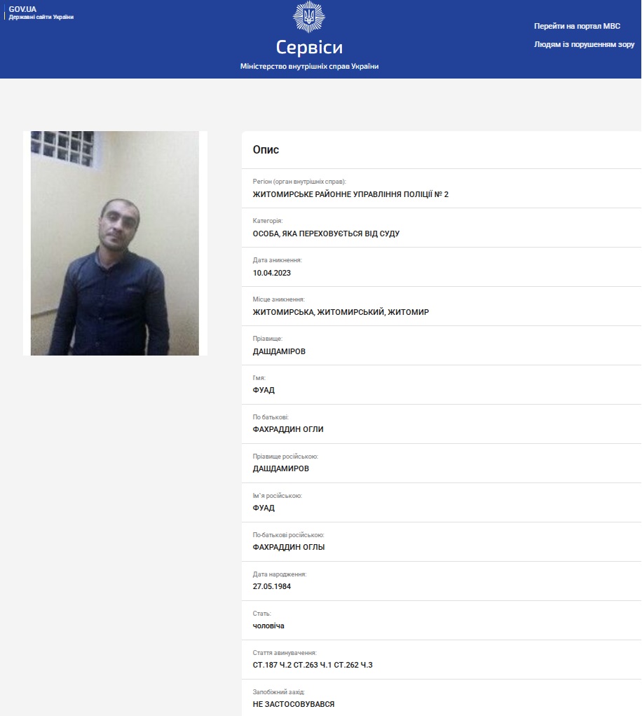 2019-cu ildə Ukraynın Jitomir vilayətində polislərə silahlı hücum edən azərbaycanlının məhkəməsi başlayır.