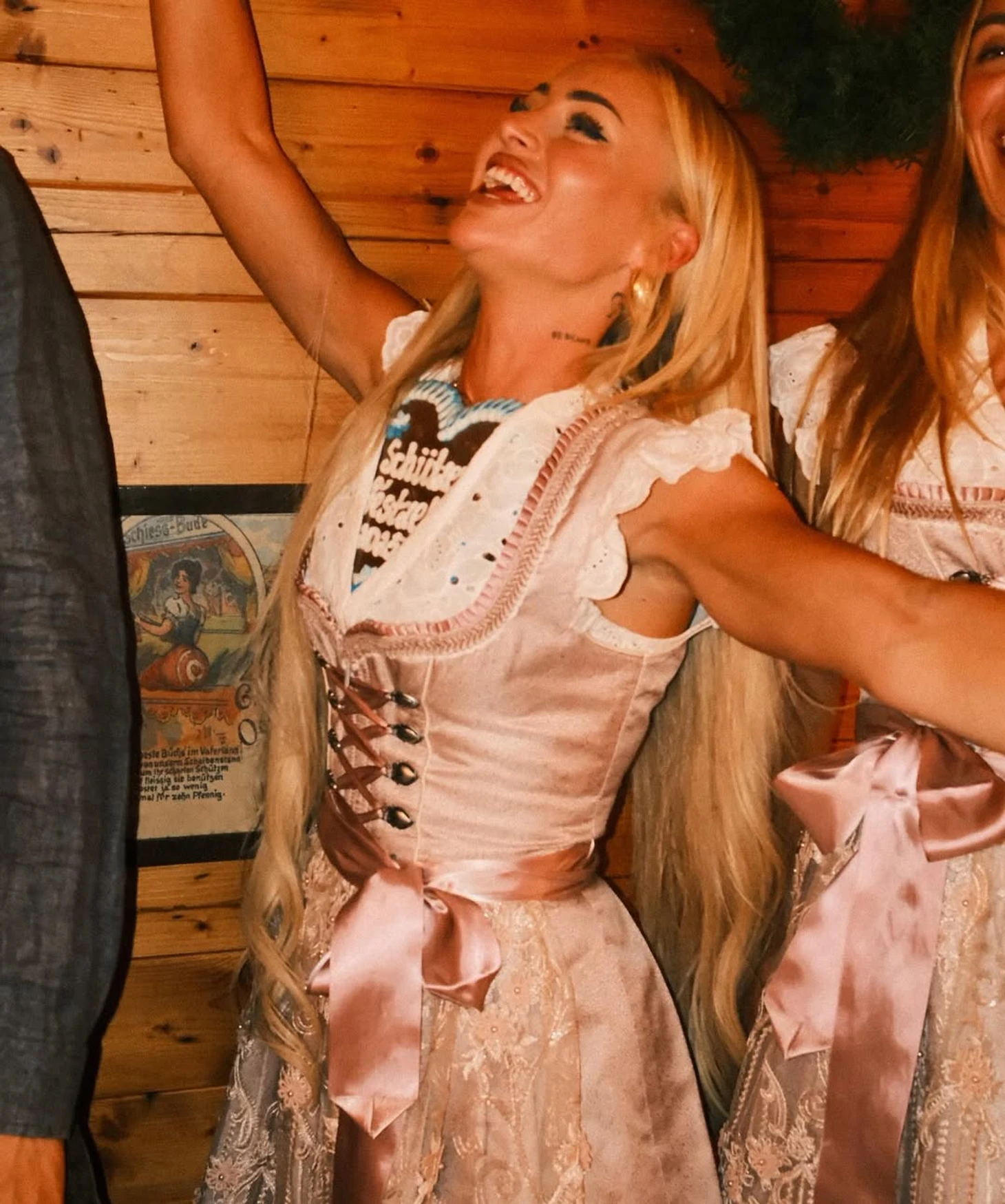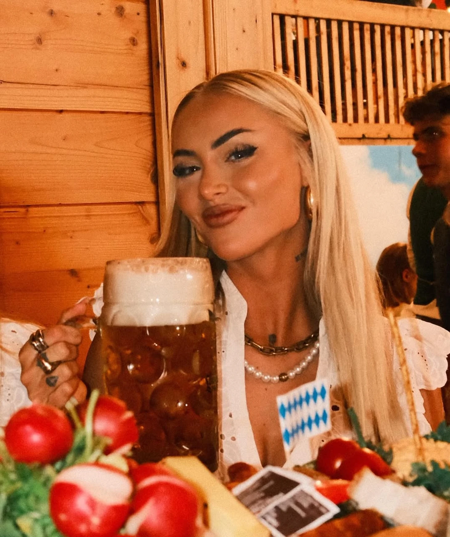 Qız bu münasibətlə ənənəvi dirndl paltarı geyinib və yerli pivədən dadıb.