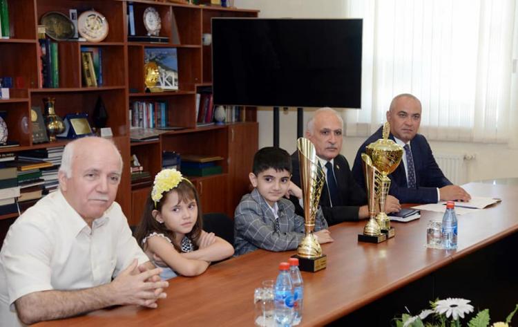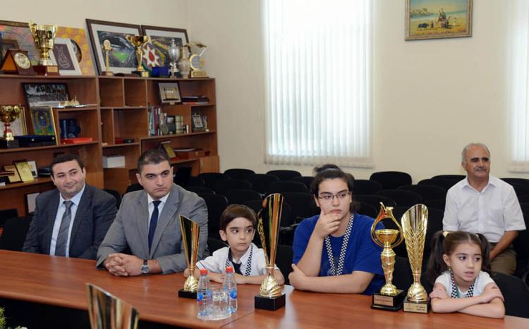Görüşün sonunda A. Rəhimov Avropa birinciliyində mükafatlar qazanmış gənc şahmatçılara AGİN-in fəxri fərmanlarını və pul mükafatları təqdim edib.