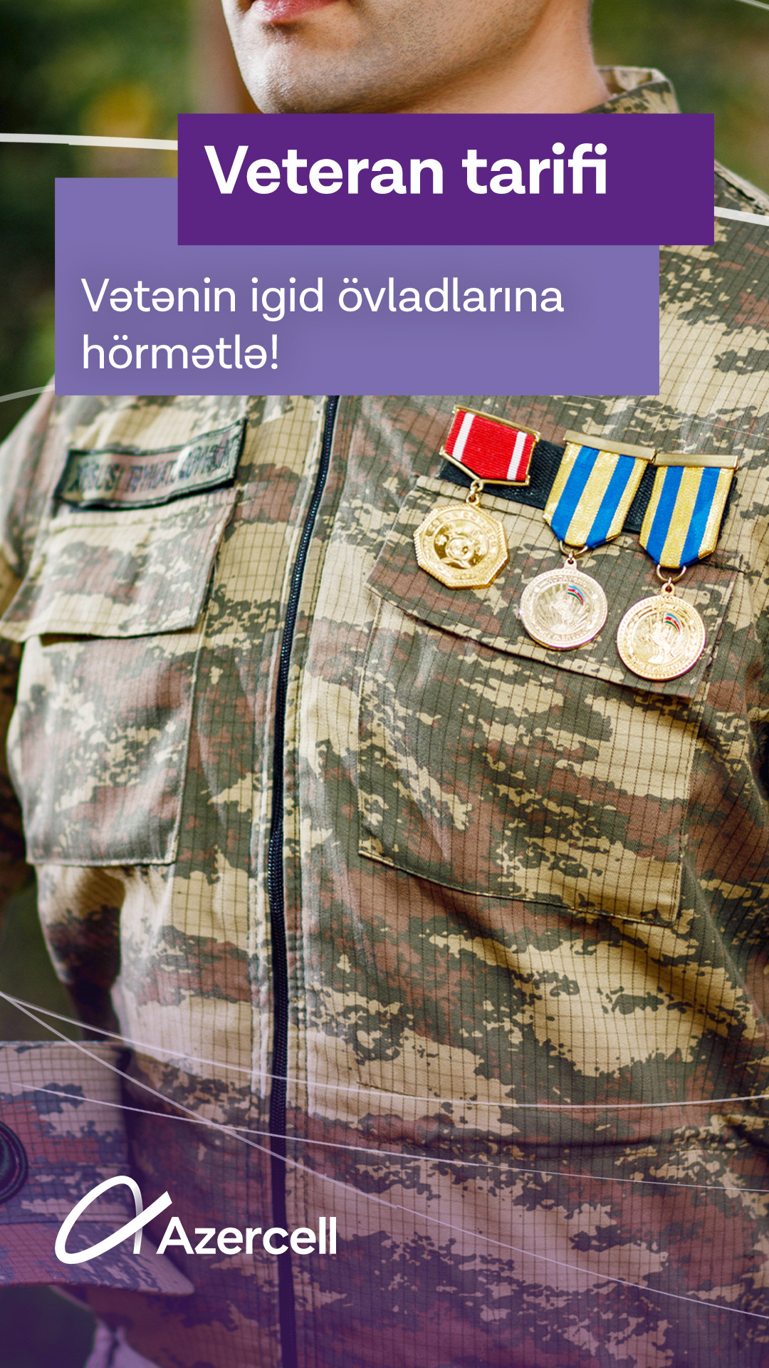 Nəzərə çatdıraq ki, yeni tarif Böyük Vətən Müharibəsi, Əfqanıstan Müharibəsi, Birinci Qarabağ Müharibəsi və İkinci Qarabağ müharibələrində iştirak edərək veteran statusu alan bütün vətəndaşlarımıza şamil edilir. Tarif haqqında daha ətraflı məlumatı www.azercell.com saytı vasitəsilə əldə etmək olar.