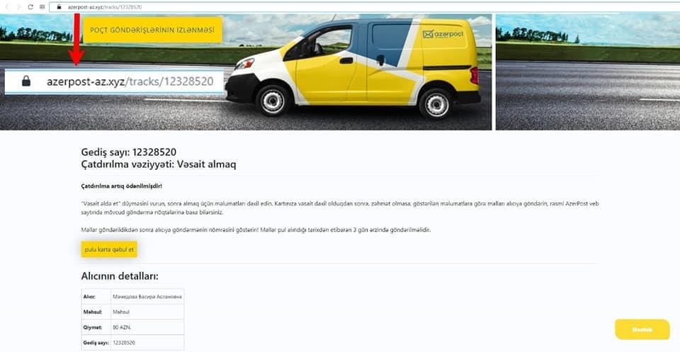 "Onların hədəfi onlayn alqı-satqı səhifələrində müxtəlif məhsulların satışını həyata keçirən vətəndaşlardır. Kiberdələduzlar alıcı qismində saxta “WhatsApp” nömrələrindən bu vətəndaşlara yazaraq məhsulu almaq istədiyini bildirir və ödənişin həyata keçirilməsi üçün satıcıdan “Azərpoçt” adına açılan saxta sayta daxil olaraq kart hesabı məlumatlarını daxil etməsini istəyir. Vətəndaş bu keçidə daxil olaraq kart hesabının məlumatlarını təqdim etdikdə hesabın balansında olan vəsait kiberdələduzların əlinə keçir.