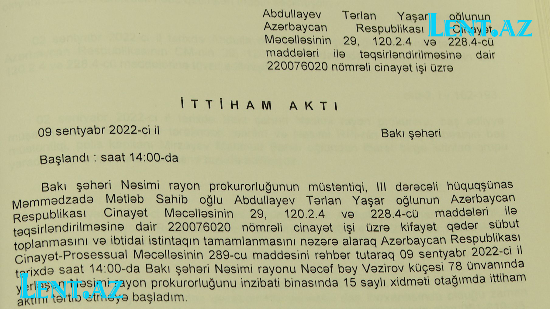 Lent.az cinayət hadisəsinin istintaq materiallarını əldə edib.