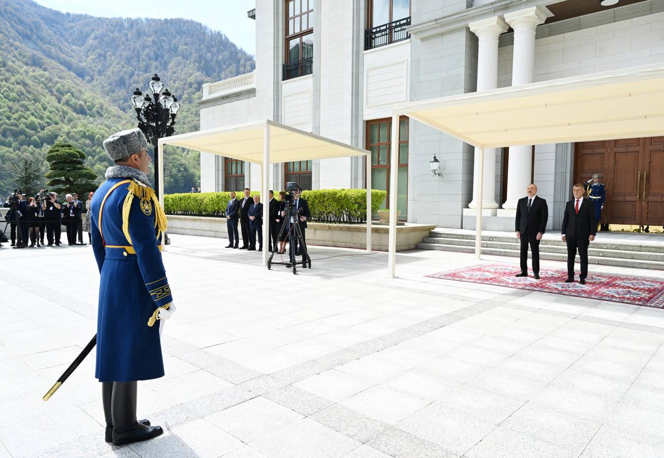 Fəxri qarovul dəstəsi hərbi marşın sədaları altında Azərbaycan Prezidenti İlham Əliyevin və Çexiyanın Baş naziri Andrey Babişin qarşısından keçib.