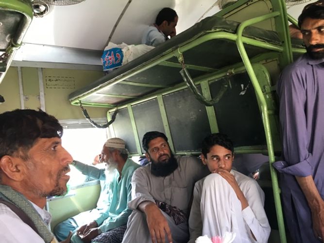 “Əkbər Ekspress” Bəlucistanın bir vaxtlar milli lideri və Camhuri Vatan Partinin (Respublika Milli Partiyası) rəhbəri olmuş Əkbər Xan Buqtinin şərəfinə adlandırılıb. Qatarın vaqonlarının hündürlüyü bizimkilərdən azdır. Mən plaskart vaqonda gedirdim və yanda olan tək nəfərlik oturacaqda əyləşmişdim. Qarşı tərəfdə üç qatlı yerlər idi. Birinci qatda 4-5 nəfər əyləşmiş, ikincisi hələlik qatlanmış, üçüncüdə isə uzananlar vardı.