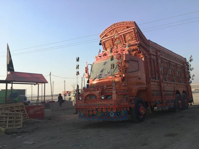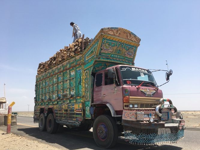 Yarımsəhralıq bu yollarda gördüyüm maraqlı məqamlardan biri də Pakistanın yük maşınları idi. İlk görünüşdə qorxulu təəssürat yaradan bu maşınlar əsl incəsənət əsərləri idi. “Cinql trak” ("jingle truck" – cingiltili yük maşını) kimi tanınan bu maşınlar əsasən bamperə bərkidilmiş zəncirlərin çıxardığı səslərə görə belə adlandırılıb. Bundan başqa, maşınların kabinəsi, yük hissəsi, təkərləri parlaq rənglərlə boyanmış əlavə detallarla bəzədilərək fərqli bir görünüş yaradırdı.