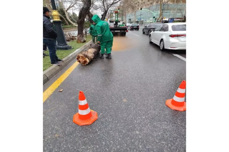 "Dünəndən etibarən gücləndirilmiş iş rejimində çalışan Bakı Şəhər Yaşıllaşdırma Təsərrüfatı Birliyinin əməkdaşları tərəfindən sınan ağaclar və qırılan budaqlar birliyin növbətçi briqadaları tərəfindən operativ şəkildə görütülür və ərazi təmizlənir", - məlumatda qeyd olunub.