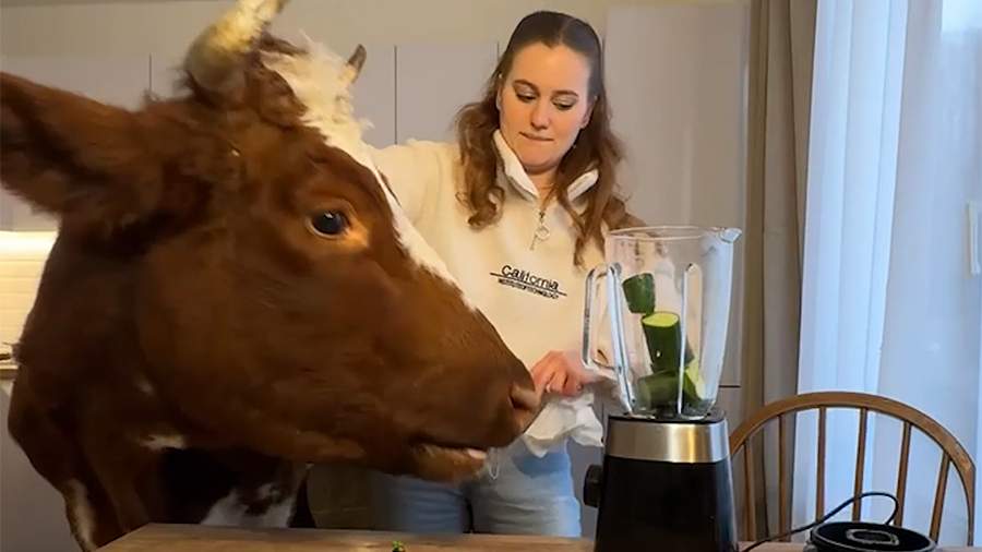 İndi inək vaxtının çox hissəsini evdə keçirir: sahibi ilə yemək yeyir, "dincəlir" və hətta yemək bişirməkdə iştirak edir.