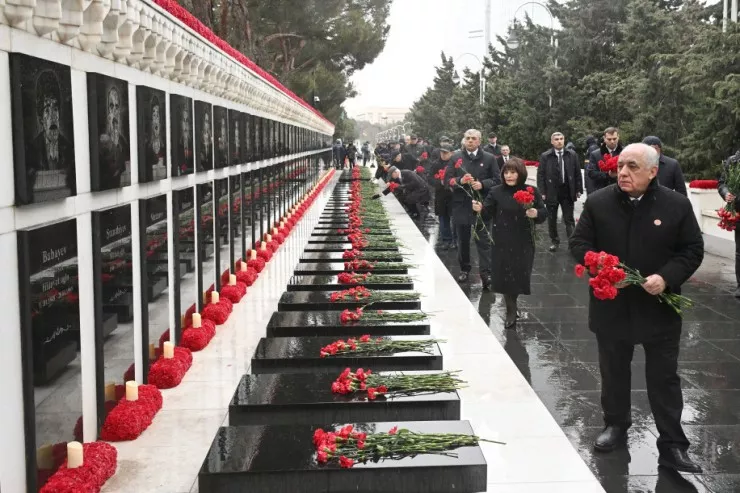 Baş nazir Əli Əsədov, Milli Məclisin sədri Sahibə Qafarova və Prezident Administrasiyasının rəhbəri Samir Nuriyev 20 Yanvar faciəsinin 36-cı ildönümü ilə əlaqədar Şəhidlər xiyabanını ziyarət edib.