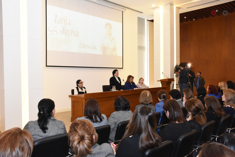 Prezident Katibliyinin rəisi Dilarə Seyidzadə Zərifə xanım Əliyevanın həyat və fəaliyyəti haqqında geniş məlumat verib. O, Azərbaycanda orta məktəb dərsliklərində Zərifə xanım Əliyeva haqqında məlumatların geniş şəkildə tədris olunmasını təklif edib.