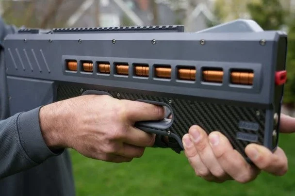 Silah elektromaqnit bobinlər əsasında işləyir və Gauss topu prinsipinə bənzər texnologiyadan istifadə edir. O, maqnit sahəsinin təsiri ilə sürətləndirilən kiçik metal mərmilər atır.