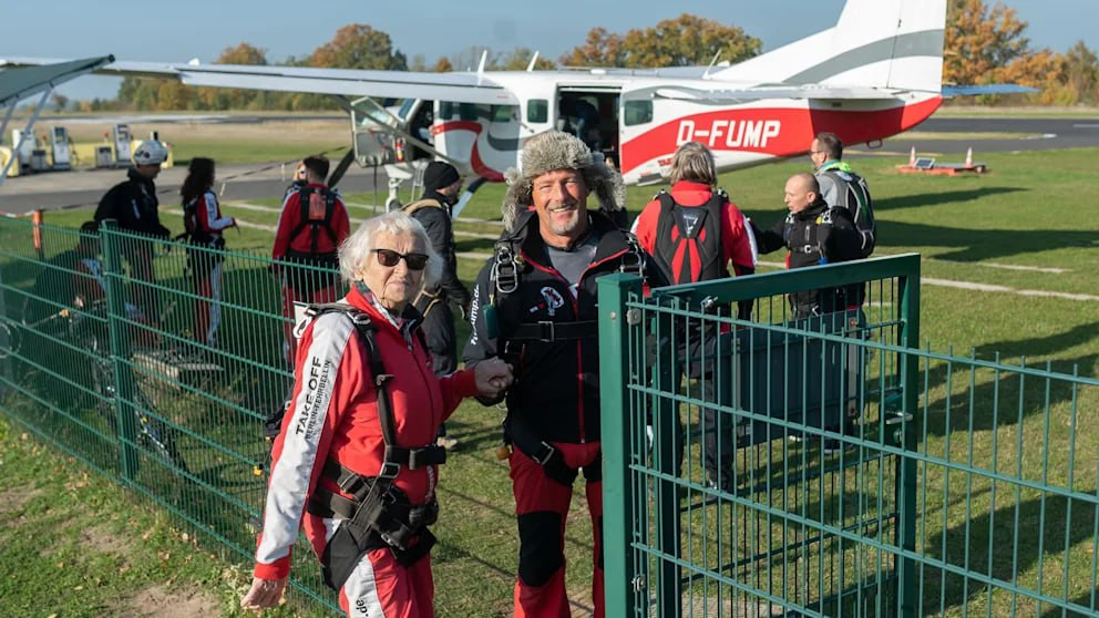 Belə ki, Birnbax növbəti tullanışını 93 yaşlı anası Mari-Luiza ilə birlikdə həyata keçirib.