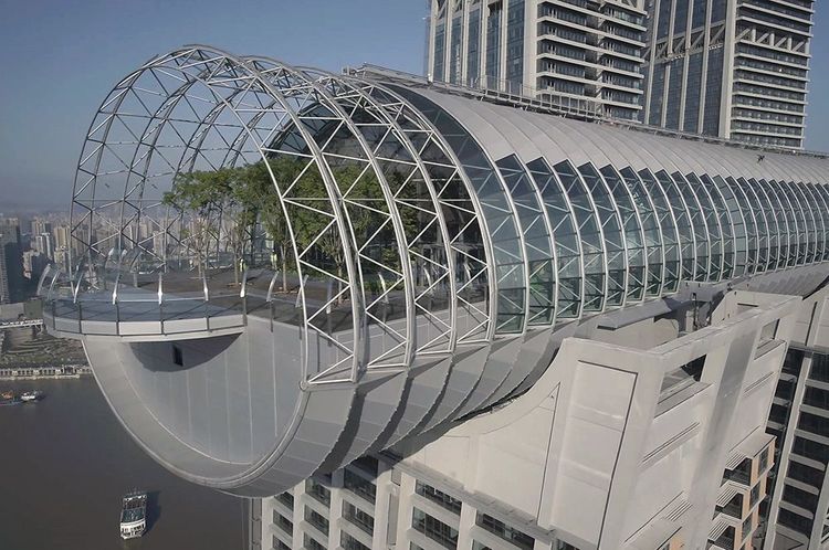 Çinin Çunsin şəhərində dünyanın ilk “üfüqi göydələn”i istifadəyə verilib.