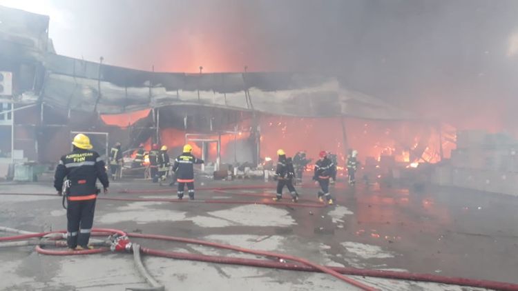 "Bakı-Sumqayıt yolunda yerləşən tikinti materialları bazarında baş vermiş güclü yanğın səbəbindən yolda hərəkət tamamilə məhdudlaşıb".