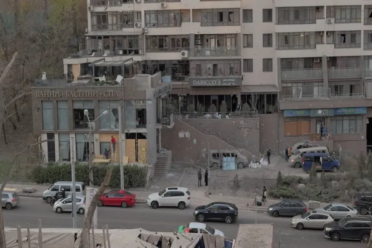 Hadisə yerində çəkiliş aparan AnewZ TV-nin əməkdaşları səfirliyin yaxınlığında yaşayan gənc cütlük – Lasik və Olena ilə danışıb. Onlar bildiriblər ki, raketin yaratdığı partlayışın gücü mənzilin bütün pəncərələrini çilik-çilik edib və evə ciddi ziyan dəyib. Cütlük yeni doğulmuş