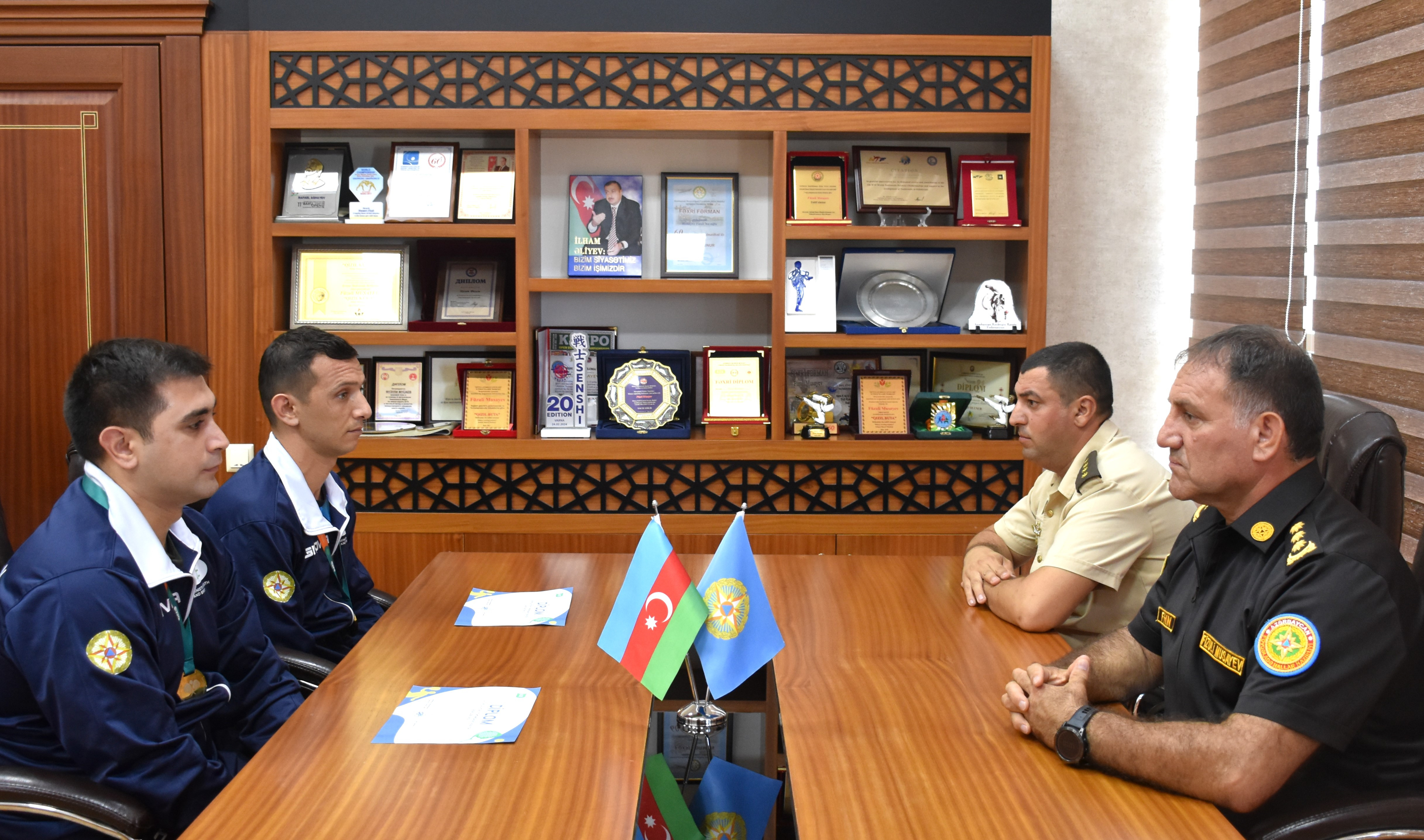 Fövqəladə Hallar Nazirliyinin İdman-sağlamlıq klubunun rəisi polkovnik Füzuli Musayev yarışda uğur qazanmış FHN komandasının üzvləri – Dövlət Yanğından Mühafizə Xidmətinin əməkdaşı daxili xidmət çavuşu Vüqar İbrahimov və Xüsusi Riskli Xİlasetmə Xidmətinin əməkdaşı gizir Əli Bayramovla görüşərək, qazandıqları nailiyyətə görə onları təbrik edib və gələcək yarışlarda uğurlar arzulayıb.
