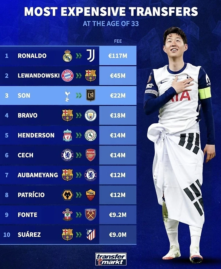 3. Son Hın-Min (“Tottenhem” → “Los-Anceles”) – 22 milyon avro