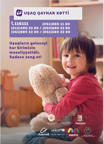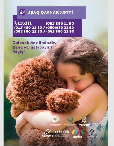 Qeyd edək ki, "Azercell Telekom" MMC-nin dəstəyi, "Ümidli Gələcək İctimai Birliyi"nin təşkilatçılığı ilə 7/24 rejimi ilə fəaliyyət göstərən Uşaq Qaynar Xətt xidməti haqqında ətraflı məlumatı www.usaqxetti.az internet səhifəsindən əldə etmək mümkündür.