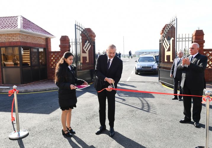 Dövlətimizin başçısı yolun rəmzi açılışını bildirən lenti kəsib.