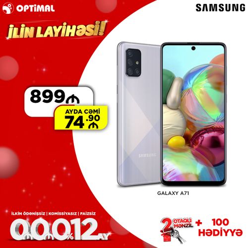 Samsung Galaxy A71 (6/128 GB, dördlü kamera) modelinə ayda 74.90 azn,