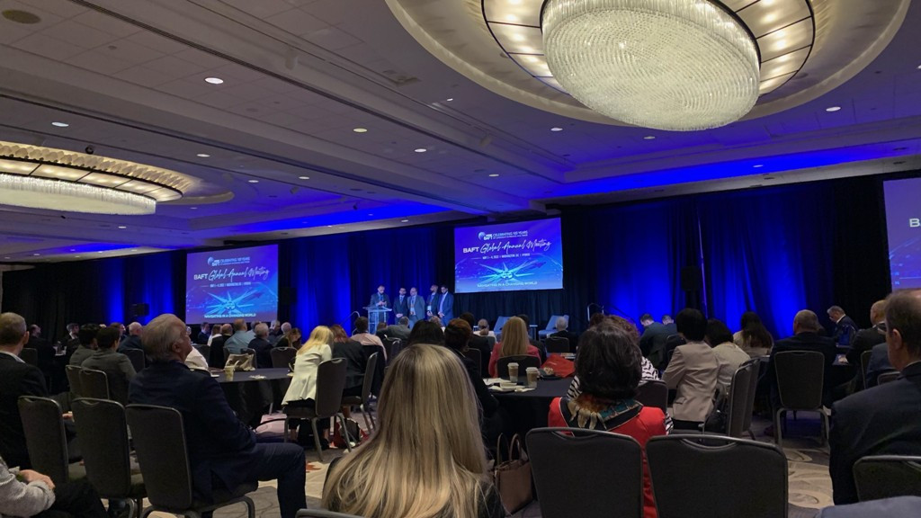 Hibrid formatda – həm onlayn, həm canlı şəkildə ABŞ-ın Vaşinqton şəhərində təşkil olunan BAFT-ın builki Qlobal Toplantısı qurumun 100 illik yubileyinə həsr olunub. Tədbir beynəlxalq ekspertlərin çıxışları, müxtəlif mövzularda sessiyalar və iştirakçılar arasında fikir mübadilələrinin aparılması üçün ikitərəfli görüşlərlə yadda qalıb. Gündəmdə olan mövzular sırasına qlobal iqtisadiyyat və gələcək fəaliyyət, rəqəmsallaşma və texnologiya, dünya iqtisadiyyatına və onun sabitliyinə təsir edən yeni çağırışlar, ekoloji, sosial və korporativ idarəetmə və digər məsələlər daxil edilib.