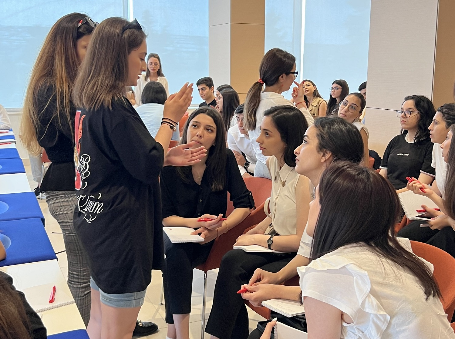 Təqdimat zamanı səsləndirilən fikirlər iştirakçılar arasında böyük marağa səbəb olub. Tələbələr “yeni dünya”nın xüsusiyyətləri və onun diktə etdiyi vərdişlər, dəyişiklikləri fürsətə çevirmənin yolları, emosional zəka, gələcəyə baxış, iş müsahibələrinə hazırlıq kimi günümüzdə böyük tələbatla qarşılanan mövzuları interaktiv şəkildə müzakirə edib, fərdi və qrup işləri çərçivəsində həm öz biliklərini, həm də kommunikasiya bacarıqlarını artırıblar.
