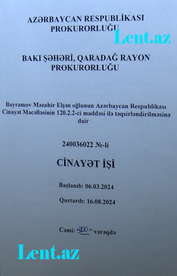 Lent.az qətl hadisəsinin istintaq materiallarını əldə edib.