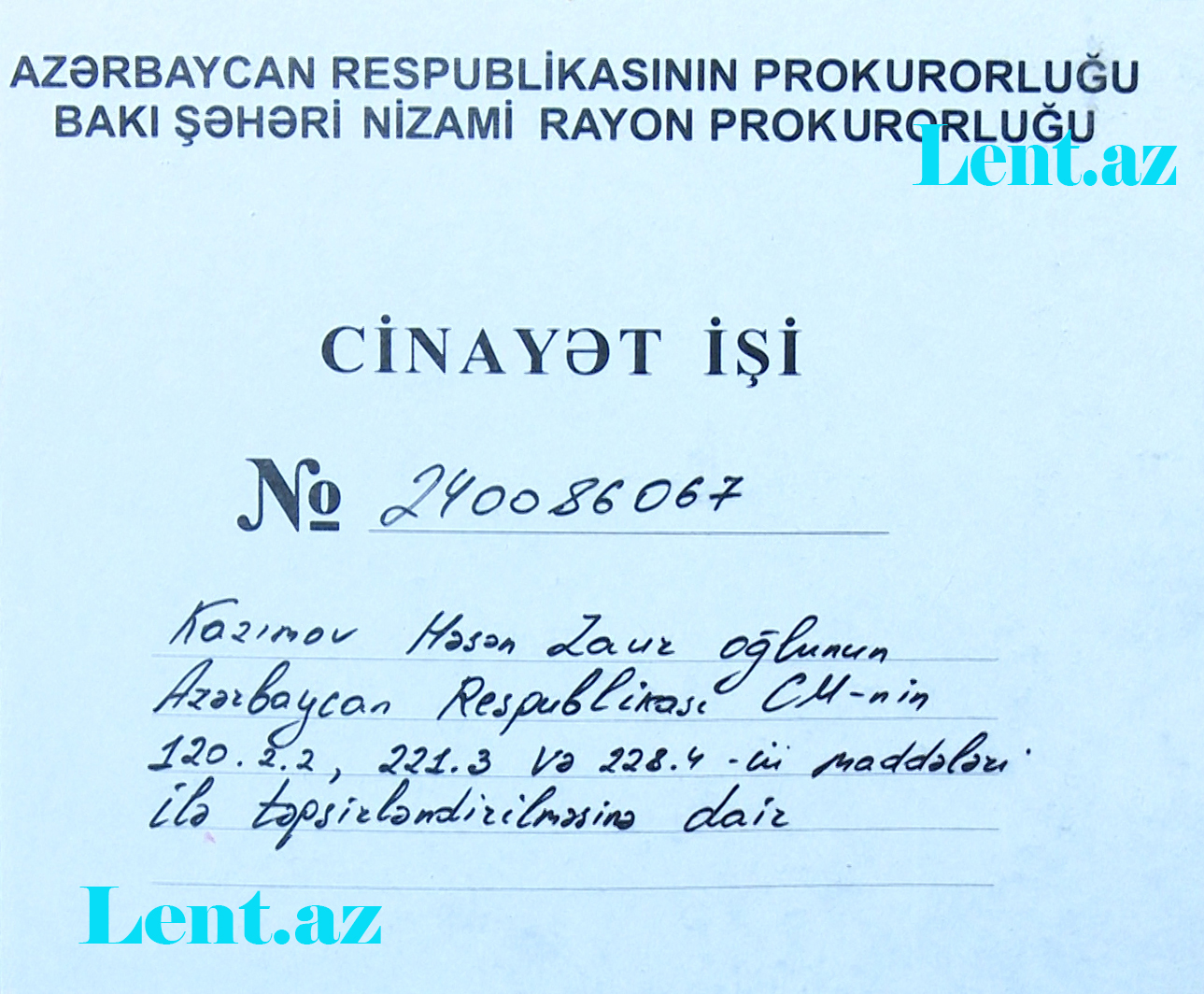 Bakı Ağır Cinayətlər Məhkəməsinin hökmü ilə Həsən Kazımov 10 il müddətinə azadlıqdan məhrum olunub.