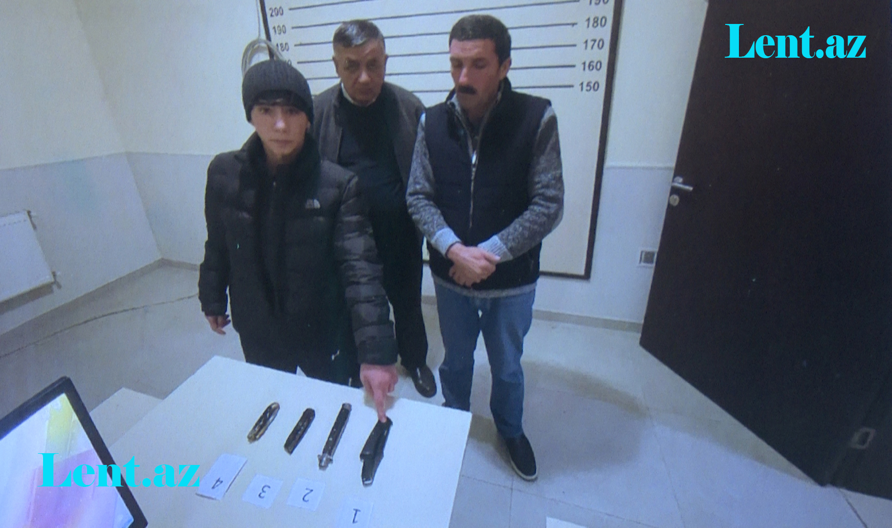 Növbətçiyə üzərində gəzdirdiyi 2 ədəd bıçağı və mobil telefonunu da təqdim edib.