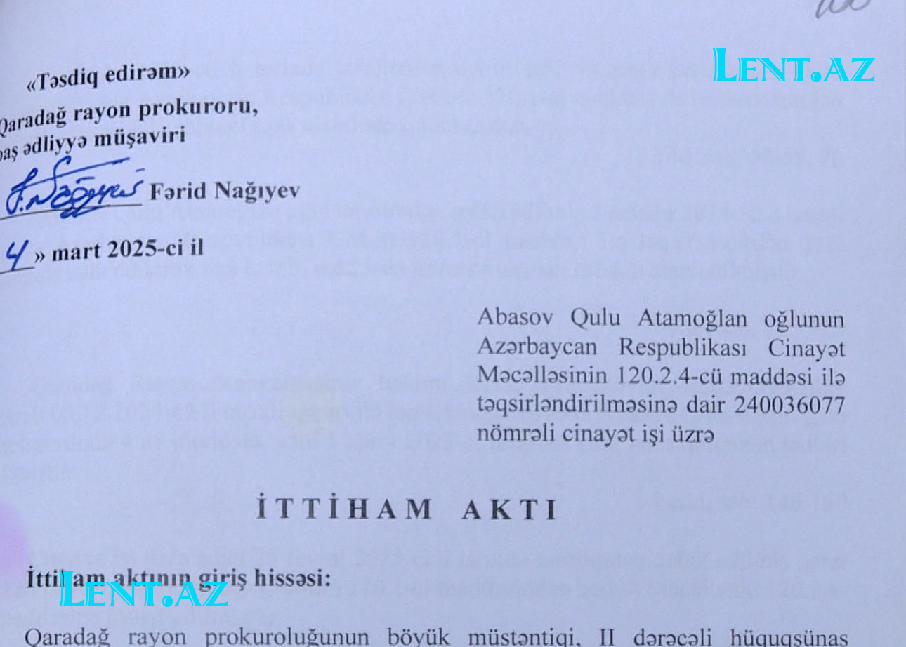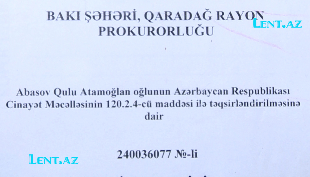 Faktla bağlı Qaradağ rayon prokurorluğunda Cinayət Məcəlləsinin 120.1-ci (qəsdən adam öldürmə) maddəsi ilə cinayət işi başlanılıb.