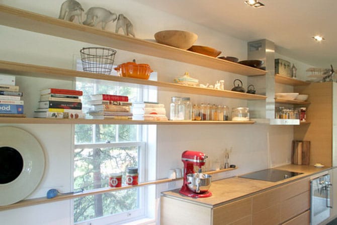 Bundan başqa şkafınızın daha səliqəli görünməsi üçün çox qab-qacağa deyil faydalana biləcəyiniz əşyalara üstünlük verin. Əgər evinizdə istifadə etdiyiniz əşyalar çoxluq təşkil edirsə, şkafı səliqəsiz yığmaqdansa zövqlü aksessuarlardan istifadə edin. Məsələn, divardan asılan zənbillər və ya tavana asılmış mətbəx aksesuarları və s.