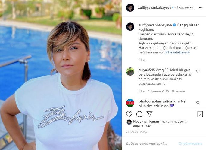 Xalq artisti Zülfiyyə Xanbabayeva instagram səhifəsindəki paylaşımı ilə diqqət çəkib.