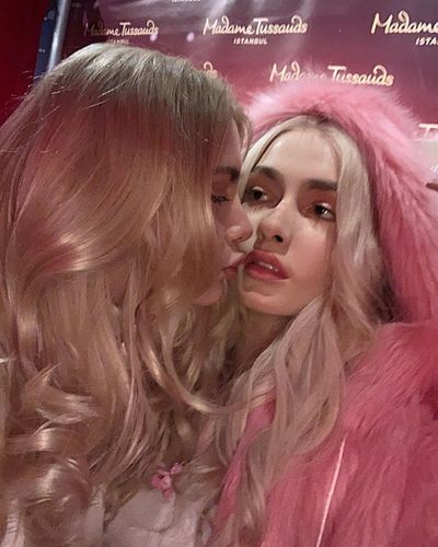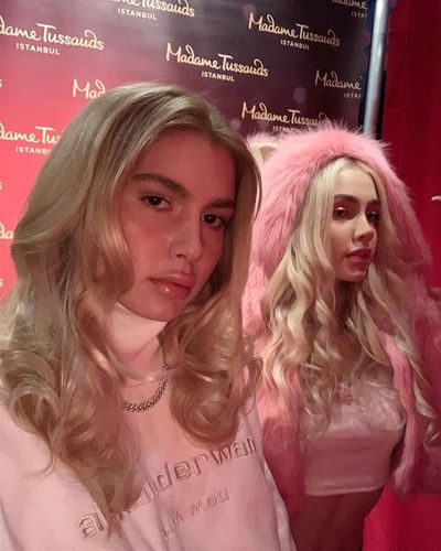 Türkiyəli məşhur müğənni Aleyna Tilki heykəli ilə birlikdə çəkdirdiyi şəkillərini sosial media hesabından paylaşıb.