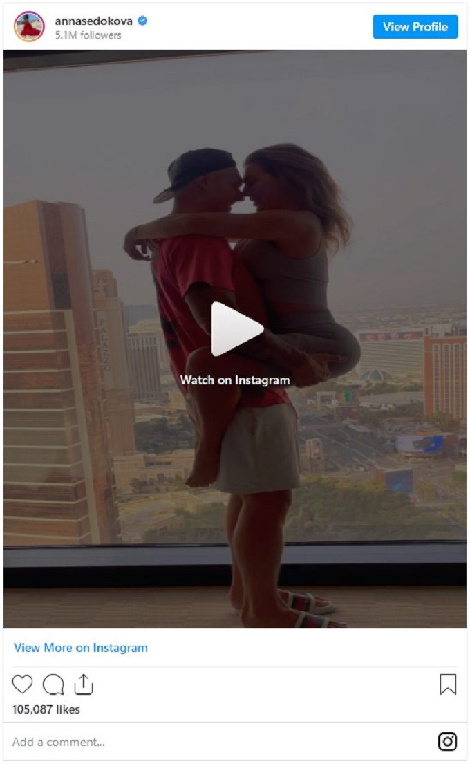 Videoda Sedokova müəyyən fiziki hazırlıq tələb edən pozada nişanlısının qucağında dayanaraq onunla öpüşür. Cütlüyün bu görüntüsü 101 mindən çox baxış əldə edib. İzləyiciləri A.Sedokovanı qeyri-etik hərəkətə yol verməkdə ittiham ediblər. Bəziləri isə "Instagram"ın azyaşlı, yeniyetmə izləyicilərinə qarşı hörmətsizlikdə günahlandırıblar.