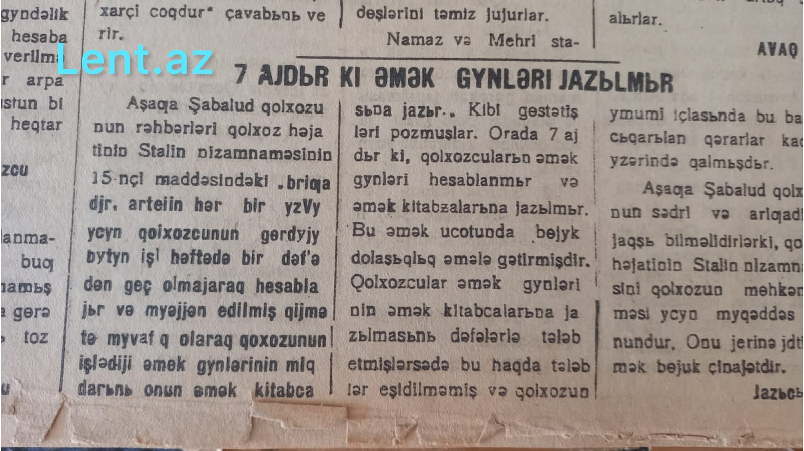 “Nuxa işçisi” qəzetinin 1936-cı ilə aid nömrəsində Aşağı Şabalıd kolxozunda işçilərə 7 aydır əmək haqqı yazılmadığı bildirilir. Qəzetdəki məqalənin fotosunu təqdim edirik.