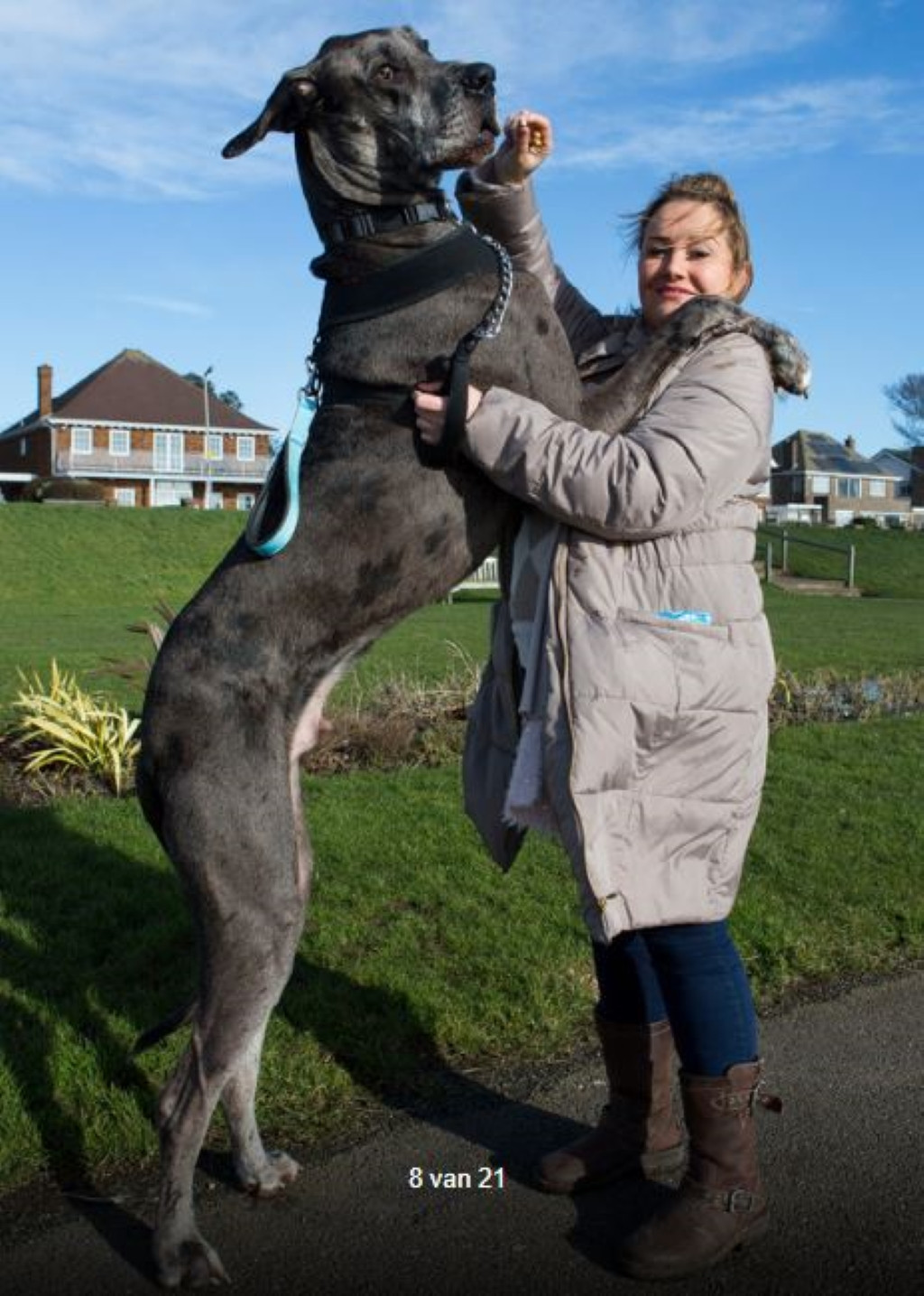 Pəncəsi üstə qalxarkən itin hündürlüyü 2,3 metrə çatırdı. Sahibinin dediyinə görə, it hələ balaca ikən 23 divanı sıradan çıxarıb. Bir neçə ay əvvəl ölsə də, hələ ki, ölçülərinə görə bu iti üstələyən olmayıb.