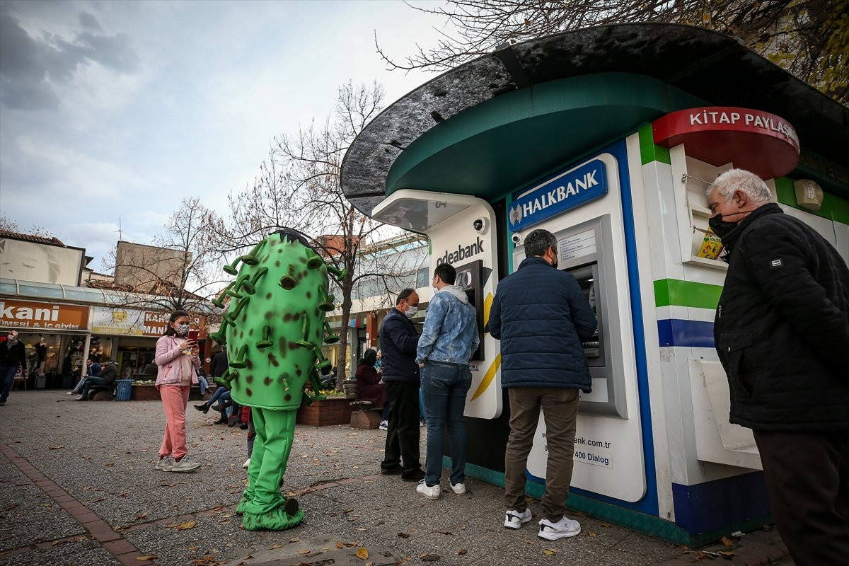 İnegöl mahalında yaşıl kürə şəklində koronavirus kostyumu geyərək küçələrdə gəzən aktyor vətəndaşlara maskanı, məsafəni və təmizlik qaydalarını xatırlatıb.