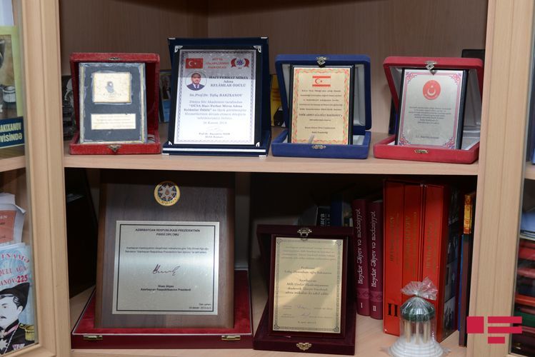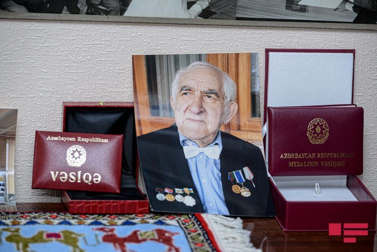 Divarlarını ağ-qara, rəngli fotoların, akvarel, yağlı boya ilə çəkilmiş rəsmlərin bəzədiyi, şkaflarına müxtəlif kitabların düzüldüyü, mükafatların, diplomların, suvenirlərin göz oxşadığı işıqlı mənzil. Deyərsən muzeydəsən, istəsən də boş yer tapmaq çətin. 90 illik ömrün xatirələri bəzəyir bu evin divarlarını. Onun üçün hər bir əşya dil açıb danışmağa hazırdı.