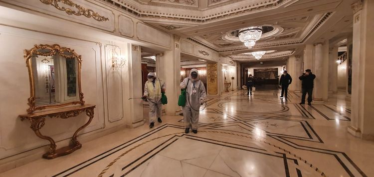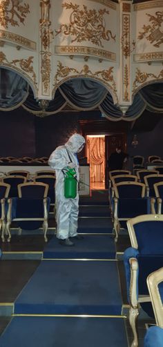 Səbail Rayon İcra Hakimiyyətinin təşkilatçılığı ilə rayonun Z.Əliyeva küçəsi 8 ünvanında yerləşən Azərbaycan Dövlət Akademik Musiqili Teatrının böyük və kiçik tamaşalar üçün nəzərdə tutulan zallarında dezinfeksiya işləri aparılıb.