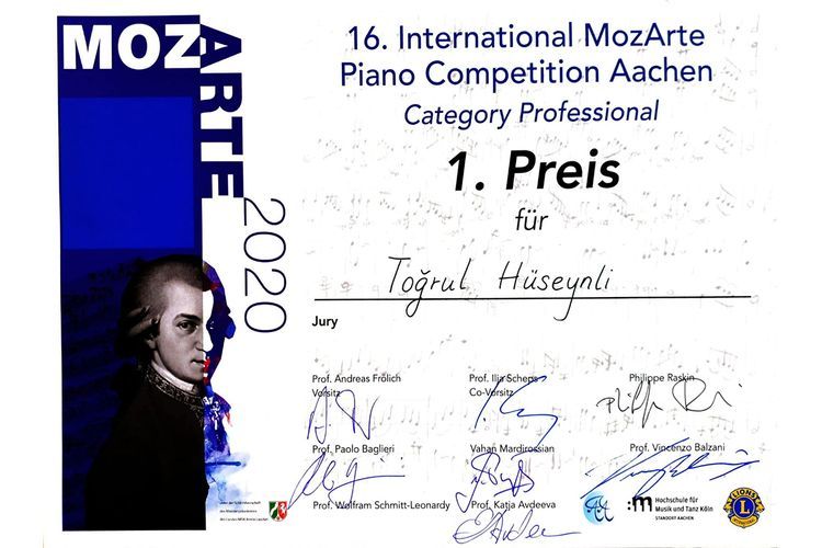 Pianoçu Toğrul Hüseynli Almaniyada keçirilən Pianoçuların XIV Motsart Beynəlxalq Müsabiqəsinin qalibi olub.