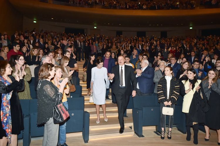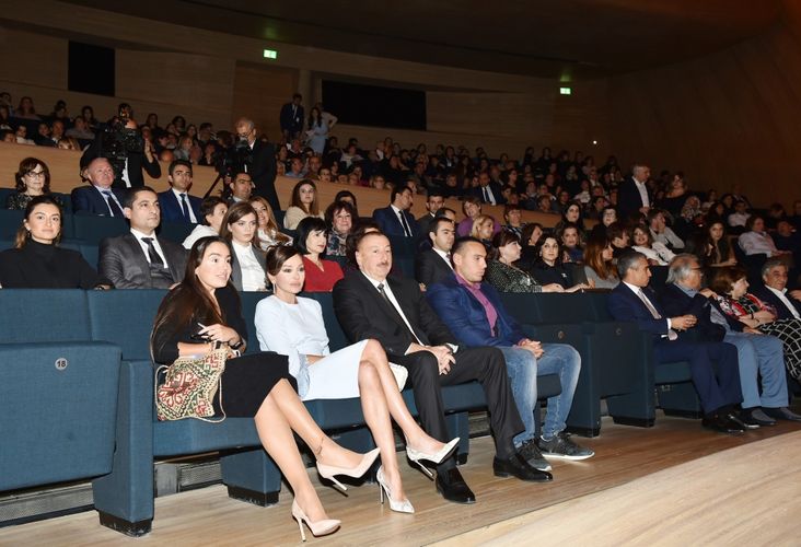 APA xəbər verir ki, Azərbaycan Respublikasının Prezidenti İlham Əliyev, birinci xanım Mehriban Əliyeva və qızları Leyla Əliyeva yaradıcılıq axşamına tamaşa ediblər.
