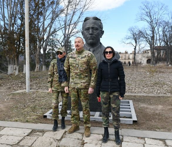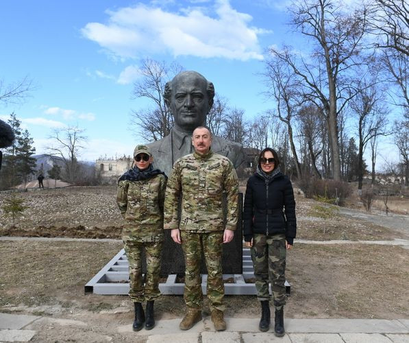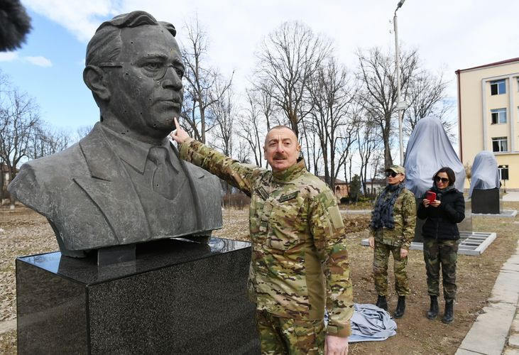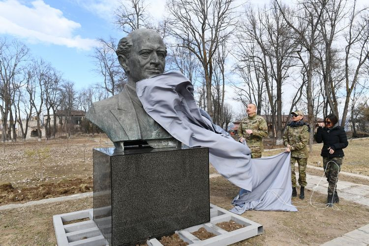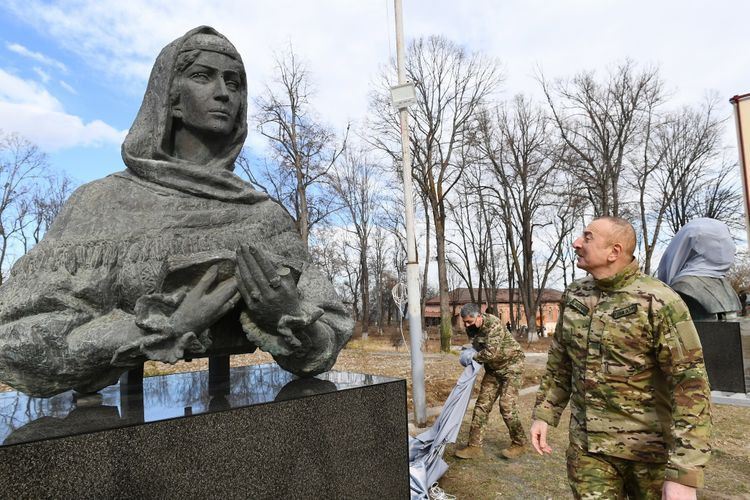 Heykəllər Şuşa şəhərində qoyulub. Dövlət başçısı heykəllərin açılışını edib.
