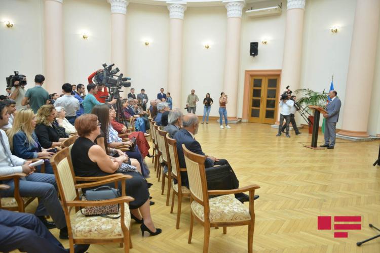 APA-nın məlumatına görə, tədbirdə çıxış edən Mədəniyyət naziri Əbülfəs Qarayev bildirib ki, bu gün əlamətdar gündür: "Bu gün Prezidentin sərəncamlarının icrasını həyata keçirəcəyik. Bu şəxslər arasında həm ədəbiyyat, həm kino, həm də digər mədəniyyət nümayəndələri var. Bir neçə gün öncə belə mükafatlar təqdim olunub. Bu insanlar Azərbaycan tarixinə, mənəvi rifahına öz töhfələrini veriblər və bu gün də fəaliyyətlərini davam etdirirlər. Hər bir yaradıcı insanın arxasında fitri istedadla yanaşı, gərgin əmək, fədakarlıq, öz üzərində işləyərək axtarışlar prosesi durur".
